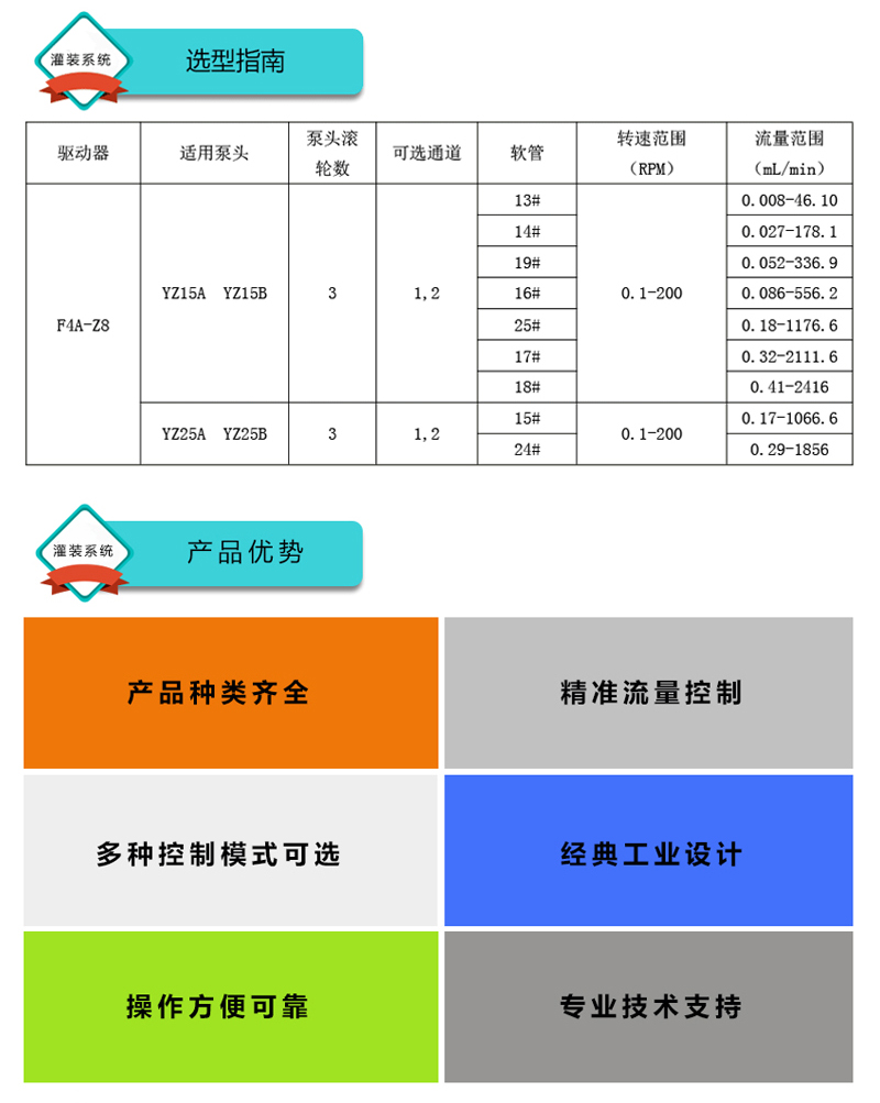 1.灌裝系統(tǒng)由4組基本通道(可擴(kuò)展至32通道),一臺控制器組成,可安裝YZ15、YZ25泵頭