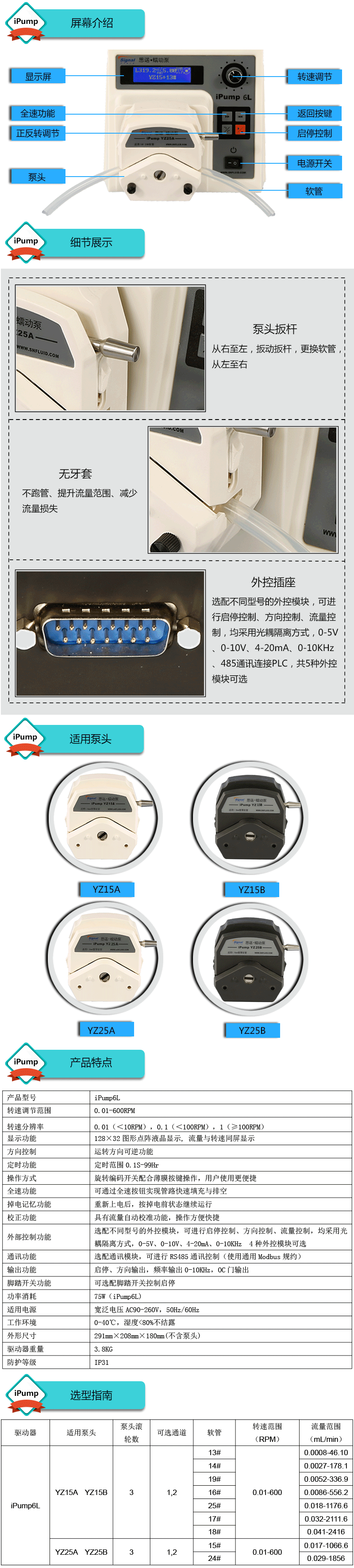 ? ? ?1.流量范圍:0.0008-2416mL/min ? ? ?2.定時功能,定時定量添加,使用更便捷 ? ? ?3.流量與轉速同屏顯示,流量校正 ? ? ?4.流量精度高達±0.5%以內 ? ? ?5.采用進口電機驅動芯片,性能好 ? ? ?6.線路板全部三防漆處理,防腐、防潮