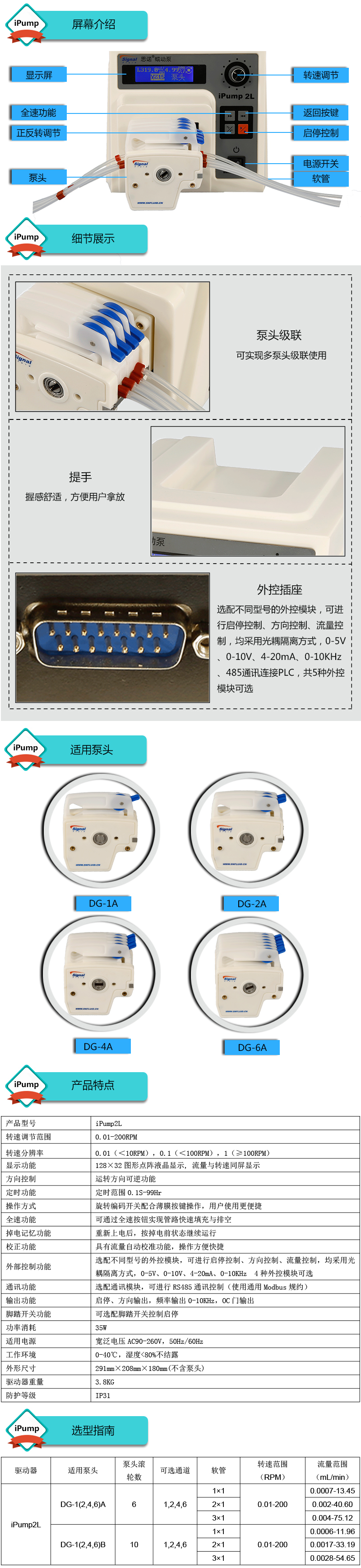 ? ? ?1.流量范圍:0.0006-75.12mL/min ? ? ?2.定時功能,定時定量添加,使用更便捷 ? ? ?3.流量與轉速同屏顯示,流量校正 ? ? ?4.流量精度高達±0.5%以內 ? ? ?5.采用進口電機驅動芯片,性能好 ? ? ?6.線路板全部三防漆處理,防腐、防潮