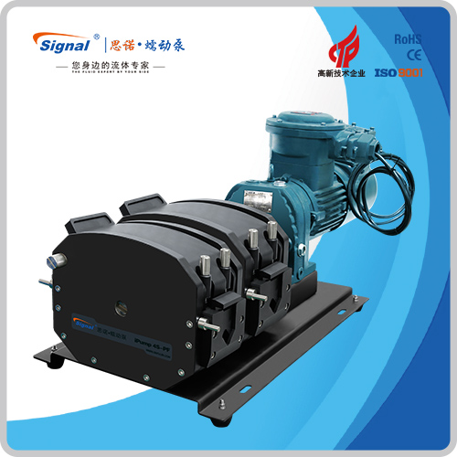 流量范圍:1.5-40L/min 彈性壓管結(jié)構(gòu),軟管壽命長(zhǎng),非常適合大流量液體傳輸 免維護(hù)交流減速電機(jī)驅(qū)動(dòng),變頻器調(diào)節(jié)轉(zhuǎn)速 全金屬泵頭,高精度,更可靠 防爆等級(jí)DIIBT4,適合易燃易爆環(huán)境使用