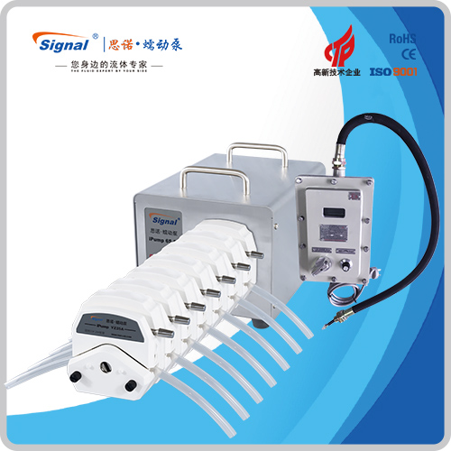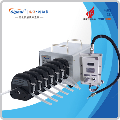 1.流量范圍:3-2416ml/min 2.免維護交流防爆減速電機驅動,變頻器調節轉速 3.電機扭矩大,可級聯雙泵頭 4.防爆等級DIIBT4,適合易燃易爆環境使用 5.304不銹鋼外殼,易擦拭,耐腐蝕,便于攜帶