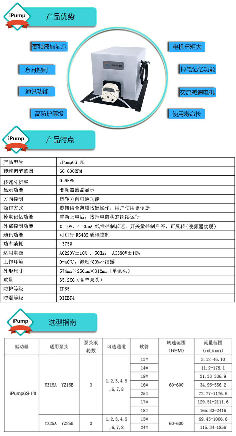 流量范圍:3.12-2416mL/min 免維護(hù)交流防爆減速電機(jī)驅(qū)動,變頻器調(diào)節(jié)轉(zhuǎn)速 電機(jī)扭矩大,可級聯(lián)雙泵頭 防爆等級DIIBT4,適合易燃易爆環(huán)境使用