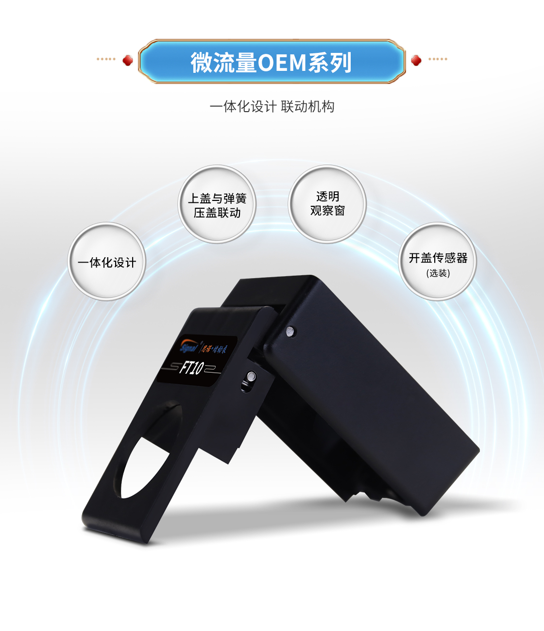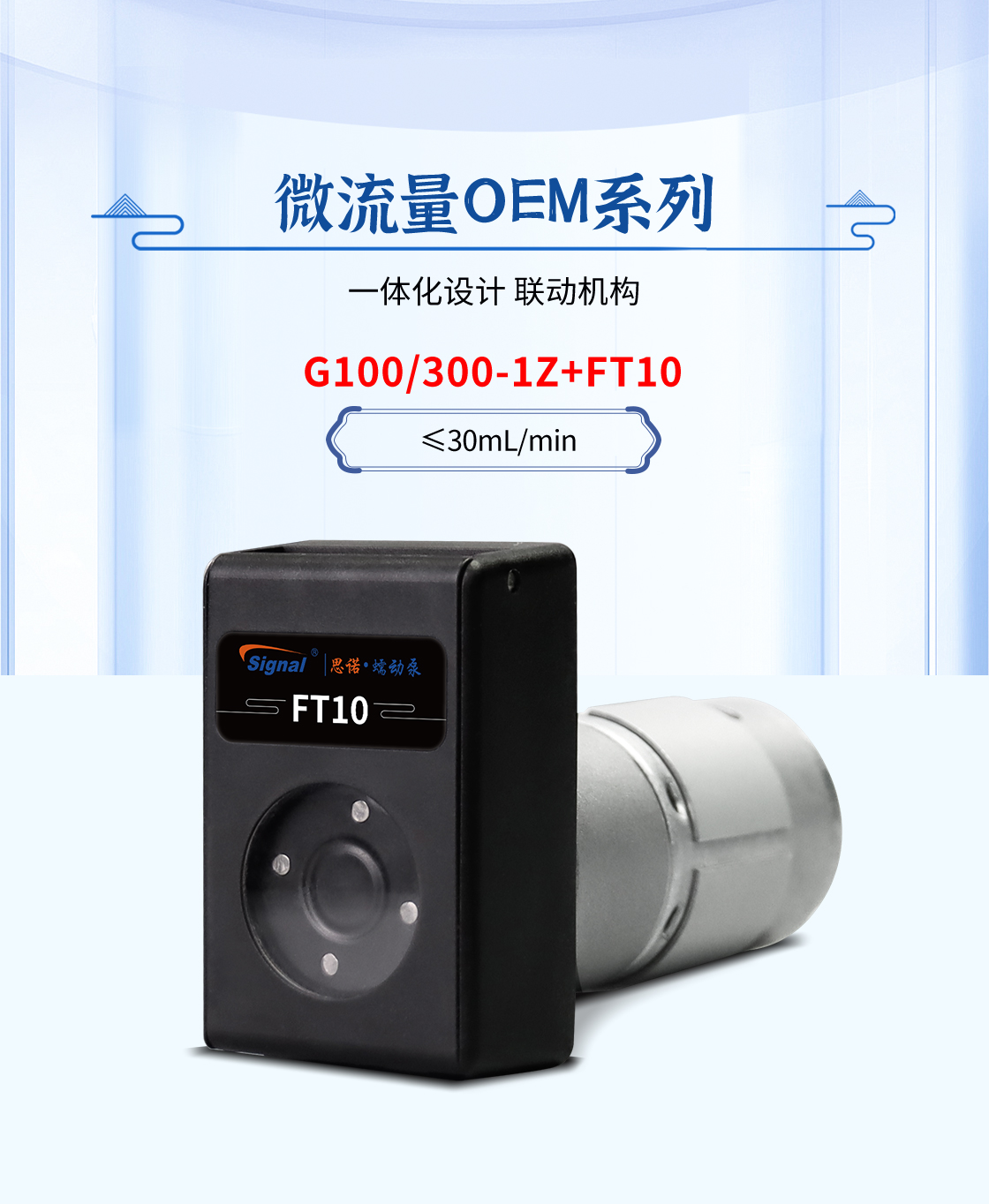 1.流量范圍:<30mL/min 2.控制與泵頭一體化設計,整體更加緊湊 3.上蓋與壓塊聯動機構,安裝軟管更方便 4.彈管壓塊,可適配多種軟管 5.直流電機驅動泵 6.透明觀察窗可方便查看泵頭運行狀態 7.開蓋傳感器(選裝):泵蓋打開,自動報警或:停止運行