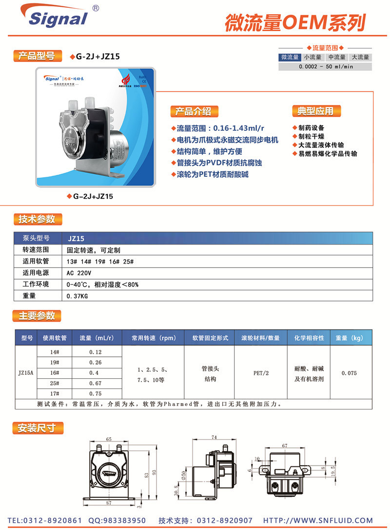 流量范圍:0.16-1.43ml/r