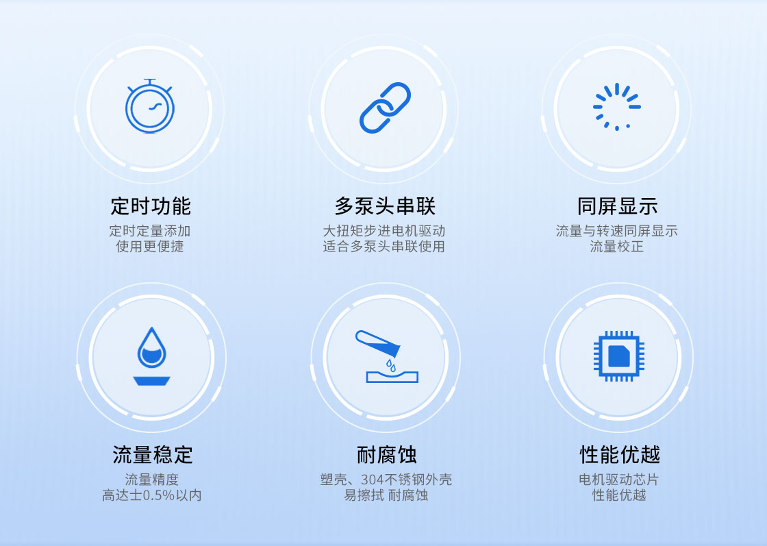 2.大扭矩步進電機驅動,適合多泵頭串聯使用