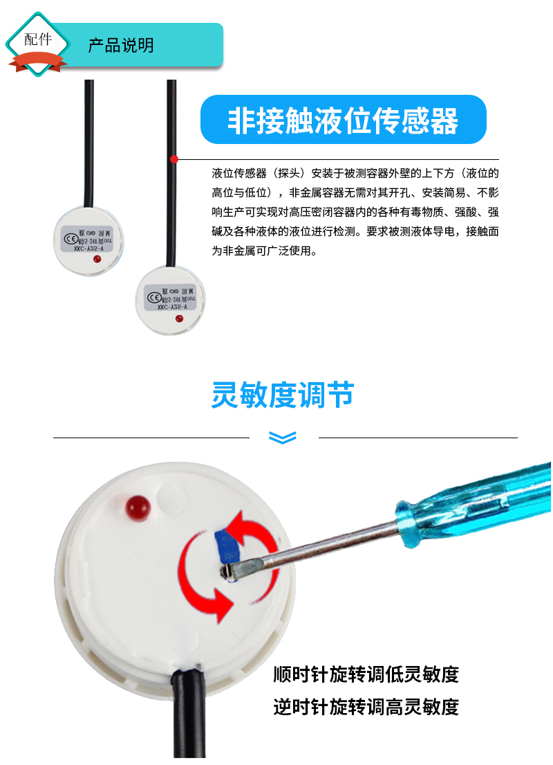 ? ? ? ? ? ??2.非接觸液位傳感器可以用于:醫療設備,疫情消殺設備,清洗機器人,掃地機器人,家用電器,家用水塔魚缸水控制,農業灌水設備,污水環保設備,無人機藥液感應,工業自動化控制等,應用廣泛