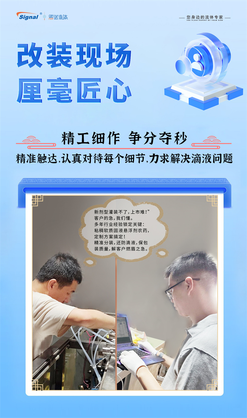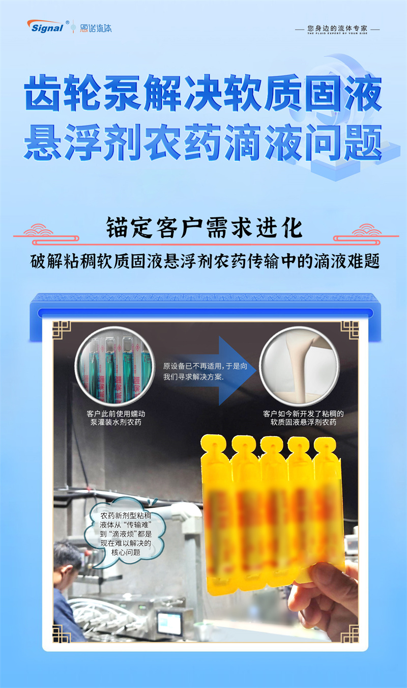 一位長期使用我司蠕動泵灌裝水劑農(nóng)藥的老客戶,因新開發(fā)粘稠的軟質(zhì)固液懸浮劑而面臨設(shè)備瓶頸,我們迅速響應(yīng),為其量身推薦了更優(yōu)解決方案——高性能齒輪泵灌裝系統(tǒng)。