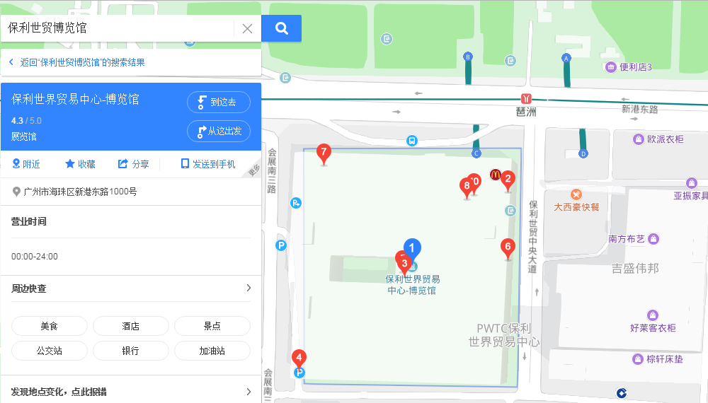 琶洲站地鐵口接駁機場及其它地鐵線路,便捷到達廣州市區(qū),出地鐵口步行可直達展廳門口。