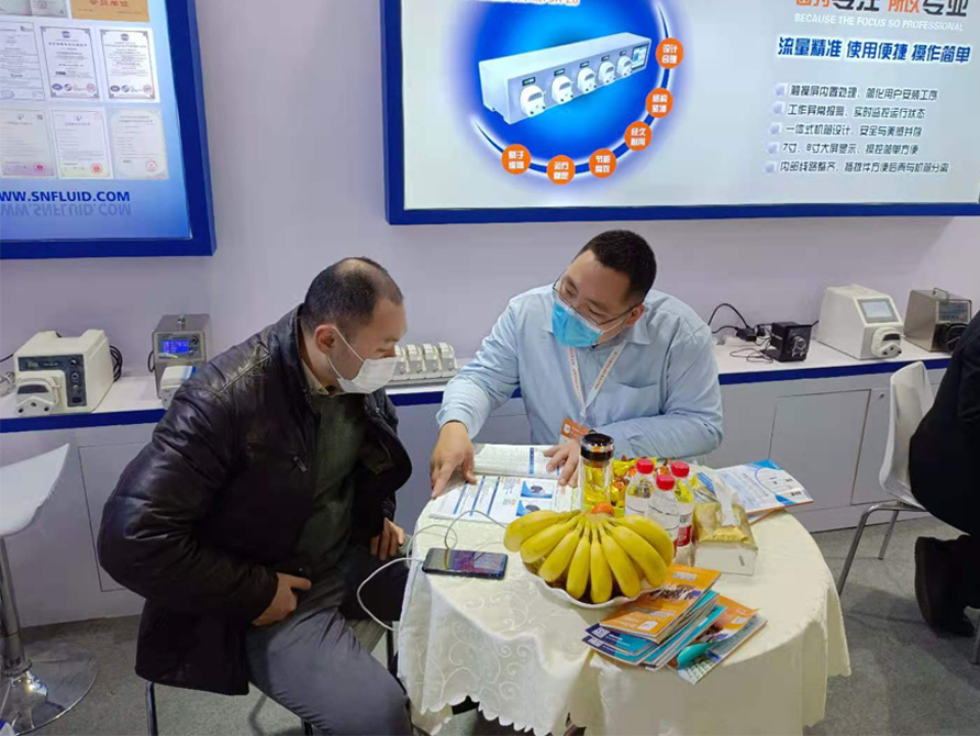 思諾流體展臺吸引了很多參展者的駐足,思諾的工作人員以飽滿的熱情、耐心地與參展者溝通產品特點和優勢。根據客戶需求現場演示展品的應用功能,客戶通過對產品的了解,對思諾蠕動泵產品有了更深的了解同時達成合作意向。